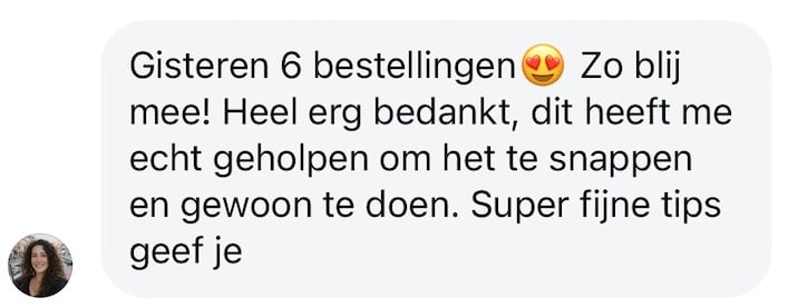 In de cursus laat ik ook zien hoe je verantwoord opschaalt. Dit is de strategie die mij heeft geholpen om in piekperiodes door te groeien naar 30 bestellingen per dag.
